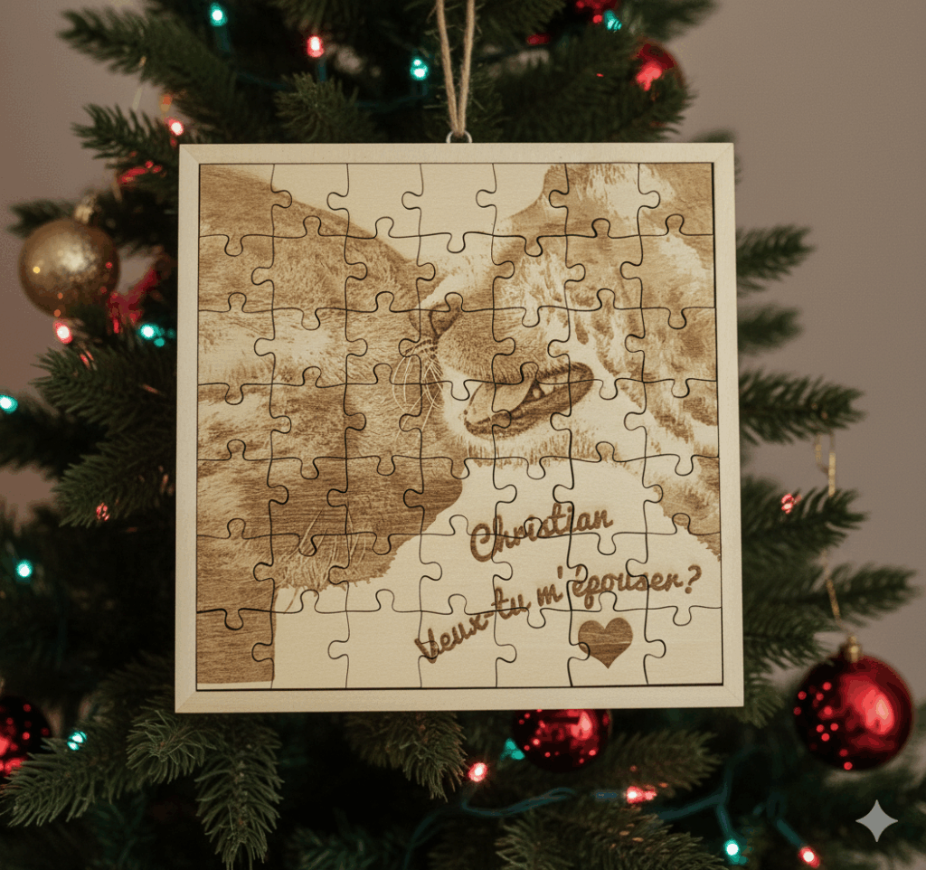 Prêts à assembler une émotion inoubliable ? Nos puzzles personnalisés sont bien plus qu’un simple jeu : ce sont des portails vers des souvenirs précieux, gravés au laser et prêts à révéler une surprise que seule la patience dévoilera !